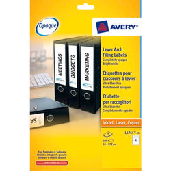 Esaurito - AVERY - Etichette bianche per raccoglitori ultragrip™ 61x192 mm - 4 et/foglio - stampanti laser - conf 25 fogli - L4761-25