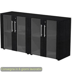 - ARTEXPORT - Coppia armadi bassi ante vetro-melamin. Con serratura 162,8x43xh.81,4 cm flora nero venato frassino - 930C-68X2/8
