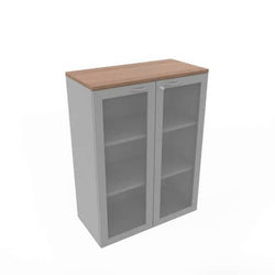 Esaurito - QUADRIFOGLIO - Armadio medio ante vetro telaio mdf, top grigio scocca trama antracite 90x45xh.123,2 cm - ECEM90T-GR-TA-V3