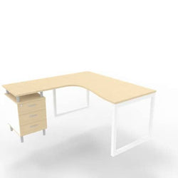 Esaurito - QUADRIFOGLIO - Scrivania con cassettiera sinistra piano faggio 160x165xh.75 cm gamba ad anello acciaio bianco practika p2 - ECSAT17S-FA-I