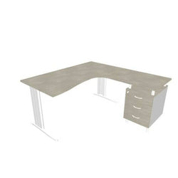 Esaurito -  QUADRIFOGLIO - Scrivania con cassettiera sinistra piano cemento 160x165xh.75cm gamba a l acciaio bianco linea practika p1 - ECSMT17S-CL-I