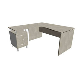 Esaurito - QUADRIFOGLIO - Scrivania con cassettiera sinistra piano cemento 160x165xh.75cm fianco a pannello in melaminico practika p4 - ECSLP17S-CL-CL