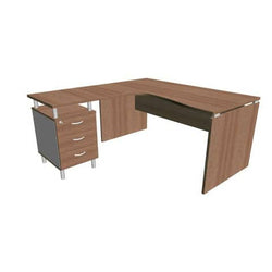 Esaurito - QUADRIFOGLIO - Scrivania con cassettiera sinistra piano noce canaletto160x165xh.75 cm fianco a pannello in melaminico practika p4 - ECSLP17S-NO-NO