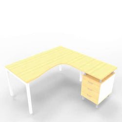 - QUADRIFOGLIO - Scrivania con cassettiera a destra piano faggio 160x165xh.75 cm gamba a ponte in acciaio bianco practika p3 - ECSPT17D-FA-I