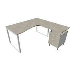 Esaurito - QUADRIFOGLIO - Scrivania con cassettiera a destra piano cemento 160x165xh.75 cm gamba ad anello acciaio bianco practika p2 - ECSAT17D-CL-I