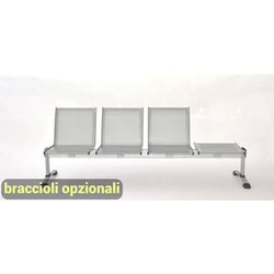 Esaurito - UNISIT - Panca 3 posti attesa plexus con tavolino in acciaio grigio schienale e seduta forati traspiranti - PS3PT