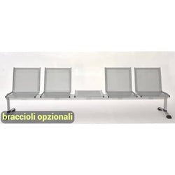 - UNISIT - Panca 4 posti attesa plexus con tavolino in acciaio grigio schienale e seduta forati traspiranti - PS4PT