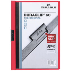 Esaurito - DURABLE - Cartellina con clip duraclip® a4 - dorso 6 mm - capacità 60 fogli rosso - 220903 - 2209-03 - Confezione risparmio da 3 PZ