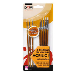 Esaurito - DOM - Pennello in pelo sintetico - conf. 8 pezzi - per colori acrilici - 11649
