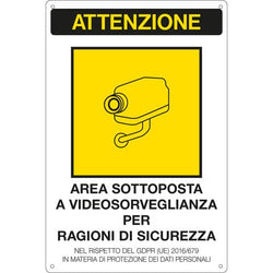 Esaurito - CARTELLI-SEGNALATORI - Cartello area video 20x30 cm immagine gialla cartelli segnalatori ''area sottoposta a videosorveglianza'' - 33378