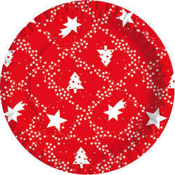 Esaurito - DOPLA - Piatti piani carta fibra vergine red xmas ø 180 mm - conf. 10 pz - 11817 - Confezione risparmio da 2 PZ