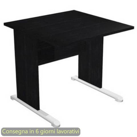 Scrivania della linea Presto, una linea operativa contemporanea progettata per un utilizzo quotidiano ed intensivo in grado di soddisfare tutte le esigenze funzionali ed estetiche. La gamma completa degli elementi permette di allestire ogni ambiente di lavoro, personalizzandolo con stile. Scrivania rettangolare con fianchi in melaminico e piede in metallo con dimensioni conformi alle normative sulla sicurezza dei posti di lavoro in ufficio. Dimensioni L. 80 x P. x 80 x H. 72 cm. Piano sp. 22 mm con bordo antiurto in ABS 3 mm senza spigoli vivi. Materiale melaminico bilaminato antigraffio ed antiriflesso conforme alle norme UNI e EN classe E1. Imballi in alto spessore in cartone riciclato a tutela dell’ambiente. Produzione certificata conforme alle procedure UNI EN ISO 9001. Certificazioni FSC e PEFC. Colore nero venato frassino.