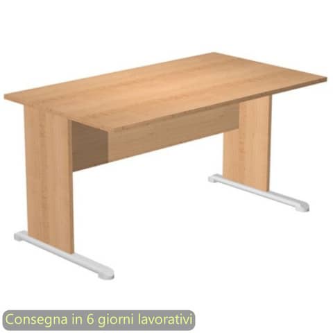 Scrivania della linea Presto, una linea operativa contemporanea progettata per un utilizzo quotidiano ed intensivo in grado di soddisfare tutte le esigenze funzionali ed estetiche. La gamma completa degli elementi permette di allestire ogni ambiente di lavoro, personalizzandolo con stile. Scrivania rettangolare con fianchi in melaminico e piede in metallo con dimensioni conformi alle normative sulla sicurezza dei posti di lavoro in ufficio. Dimensioni L. 140 x P. x 80 x H. 72 cm. Piano sp. 22 mm con bordo antiurto in ABS 3 mm senza spigoli vivi. Materiale melaminico bilaminato antigraffio ed antiriflesso conforme alle norme UNI e EN classe E1. Imballi in alto spessore in cartone riciclato a tutela dell’ambiente. Produzione certificata conforme alle procedure UNI EN ISO 9001. Certificazioni FSC e PEFC. Colore faggio.