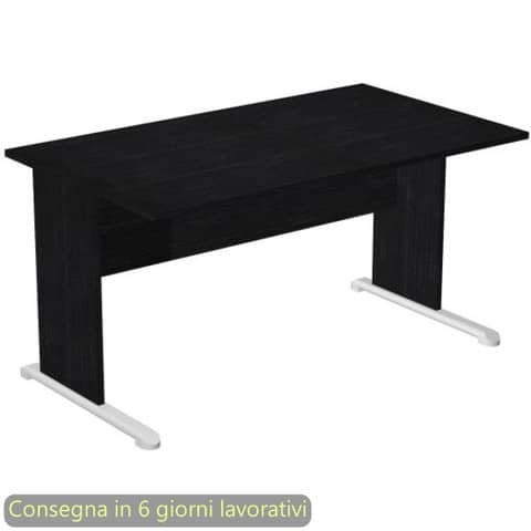 Scrivania della linea Presto, una linea operativa contemporanea progettata per un utilizzo quotidiano ed intensivo in grado di soddisfare tutte le esigenze funzionali ed estetiche. La gamma completa degli elementi permette di allestire ogni ambiente di lavoro, personalizzandolo con stile. Scrivania rettangolare con fianchi in melaminico e piede in metallo con dimensioni conformi alle normative sulla sicurezza dei posti di lavoro in ufficio. Dimensioni L. 140 x P. x 80 x H. 72 cm. Piano sp. 22 mm con bordo antiurto in ABS 3 mm senza spigoli vivi. Materiale melaminico bilaminato antigraffio ed antiriflesso conforme alle norme UNI e EN classe E1. Imballi in alto spessore in cartone riciclato a tutela dell’ambiente. Produzione certificata conforme alle procedure UNI EN ISO 9001. Certificazioni FSC e PEFC. Colore nero venato frassino.
