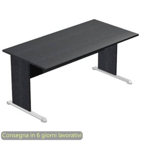 Scrivania della linea Presto, una linea operativa contemporanea progettata per un utilizzo quotidiano ed intensivo in grado di soddisfare tutte le esigenze funzionali ed estetiche. La gamma completa degli elementi permette di allestire ogni ambiente di lavoro, personalizzandolo con stile. Scrivania rettangolare con fianchi in melaminico e piede in metallo con dimensioni conformi alle normative sulla sicurezza dei posti di lavoro in ufficio. Dimensioni L. 160 x P. x 80 x H. 72 cm. Piano sp. 22 mm con bordo antiurto in ABS 3 mm senza spigoli vivi. Materiale melaminico bilaminato antigraffio ed antiriflesso conforme alle norme UNI e EN classe E1. Imballi in alto spessore in cartone riciclato a tutela dell’ambiente. Produzione certificata conforme alle procedure UNI EN ISO 9001. Certificazioni FSC e PEFC. Colore nero venato frassino.