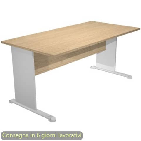 Scrivania della linea Presto, una linea operativa contemporanea progettata per un utilizzo quotidiano ed intensivo in grado di soddisfare tutte le esigenze funzionali ed estetiche. La gamma completa degli elementi permette di allestire ogni ambiente di lavoro, personalizzandolo con stile. Scrivania rettangolare con fianchi in melaminico e piede in metallo con dimensioni conformi alle normative sulla sicurezza dei posti di lavoro in ufficio. Dimensioni L. 160 x P. x 80 x H. 72 cm. Piano sp. 22 mm con bordo antiurto in ABS 3 mm senza spigoli vivi. Materiale melaminico bilaminato antigraffio ed antiriflesso conforme alle norme UNI e EN classe E1. Imballi in alto spessore in cartone riciclato a tutela dell’ambiente. Produzione certificata conforme alle procedure UNI EN ISO 9001. Certificazioni FSC e PEFC. Colore del piano rovere. Fianchi grigio alluminio.