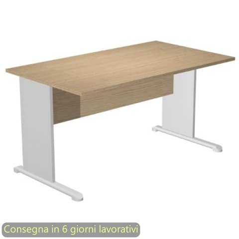 Scrivania della linea Presto, una linea operativa contemporanea progettata per un utilizzo quotidiano ed intensivo in grado di soddisfare tutte le esigenze funzionali ed estetiche. La gamma completa degli elementi permette di allestire ogni ambiente di lavoro, personalizzandolo con stile. Scrivania rettangolare con fianchi in melaminico e piede in metallo con dimensioni conformi alle normative sulla sicurezza dei posti di lavoro in ufficio. Dimensioni L. 120 x P. x 80 x H. 72 cm. Piano sp. 22 mm con bordo antiurto in ABS 3 mm senza spigoli vivi. Materiale melaminico bilaminato antigraffio ed antiriflesso conforme alle norme UNI e EN classe E1. Imballi in alto spessore in cartone riciclato a tutela dell’ambiente. Produzione certificata conforme alle procedure UNI EN ISO 9001. Certificazioni FSC e PEFC. Colore del piano rovere. Fianchi grigio alluminio.