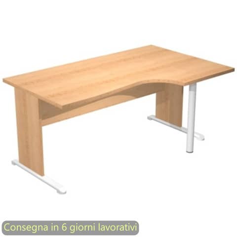 Scrivania della linea Presto, una linea operativa contemporanea progettata per un utilizzo quotidiano ed intensivo in grado di soddisfare tutte le esigenze funzionali ed estetiche. La gamma completa degli elementi permette di allestire ogni ambiente di lavoro, personalizzandolo con stile. Scrivanie con dimensioni conformi alle normative sulla sicurezza dei posti di lavoro in ufficio. Dimensioni L. 160 x P. 60/80/100 x H. 72 cm. Sagomatura laterale destra con sostegno in metallo grigio alluminio. Piani antigraffio ed antiriflesso in bilaminato nobilitato melaminico spessore 22 mm e modesty panel strutturale sp. 18 mm conformi alle norme UNI e EN classe E1. Bordi dei piani in ABS 3 mm antiurto ed assenza di spigoli vivi. Fianchi in melaminico e piede metallico. Imballi in cartone riciclato alto spessore a tutela dell’ambiente. Produzione certificata conforme alle procedure UNI EN ISO 9001. Certificazioni FSC e PEFC. Piano e gambe noce chiaro.