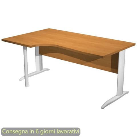 Scrivania della linea Presto, una linea operativa contemporanea progettata per un utilizzo quotidiano ed intensivo in grado di soddisfare tutte le esigenze funzionali ed estetiche. La gamma completa degli elementi permette di allestire ogni ambiente di lavoro, personalizzandolo con stile. Scrivanie con dimensioni conformi alle normative sulla sicurezza dei posti di lavoro in ufficio. Dimensioni L. 160 x P. 60/80/100 x H. 72 cm. Sagomatura laterale sinistra con sostegno in metallo grigio alluminio. Piani antigraffio ed antiriflesso in bilaminato nobilitato melaminico spessore 22 mm e modesty panel strutturale sp. 18 mm conformi alle norme UNI e EN classe E1. Bordi dei piani in ABS 3 mm antiurto ed assenza di spigoli vivi. Fianchi in metallo verniciato ad L. Imballi in cartone riciclato alto spessore a tutela dell’ambiente. Produzione certificata conforme alle procedure UNI EN ISO 9001. Certificazioni FSC e PEFC. Piano e controvenatura noce chiaro. Fianchi bianco opaco.