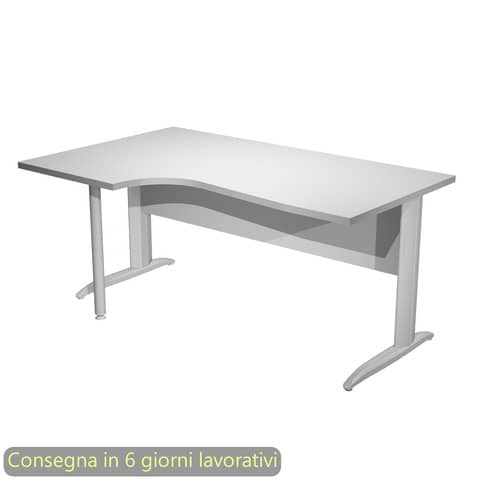 Scrivania compatta con sagoma laterale sinistra con fianchi in metallo ad L della linea Presto, una linea operativa contemporanea progettata per un utilizzo quotidiano ed intensivo in grado di soddisfare tutte le esigenze funzionali ed estetiche. La gamma completa degli elementi permette di allestire ogni ambiente di lavoro, personalizzandolo con stile. Dimensioni L. 160 x p. 60/80/100 x H. 72 cm. Piano sp. 22 mm con bordo antiurto in ABS 3 mm ed assenza di spigoli vivi, in melanico antigraffio e antiriflesso conforme alle norme UNI e EN classe E1. Disponibie anche nella versione con sagoma laterale destra al codice 125535. Produzione certificata conforme alle procedure UNI EN ISO 9001. Imballo a tutela dell' ambiente totalmente in cartone per un completo riciclo. Certificazioni FSC e PEFC. Colore piano e controventatura grigio e gambe verniciate effetto cromato.