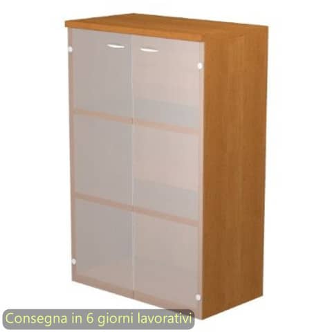 Mobile medio della linea Presto, una linea operativa contemporanea progettata per un utilizzo quotidiano ed intensivo in grado di soddisfare tutte le esigenze funzionali ed estetiche. La gamma completa degli elementi permette di allestire ogni ambiente di lavoro, personalizzandolo con stile. Scrivanie con dimensioni conformi alle normative sulla sicurezza dei posti di lavoro in ufficio. Dimensioni L. 80 x P. 35 x H. 120 cm. Top sp. 22 mm. Struttura, ante e ripiani sp. 18 mm. Due ripiani regolabili in altezza con un sistema di bloccaggio nella posizione desiderata. Ante in vetro satinato senza serratura. Il mobile, rifinito posteriormente nello stesso colore della struttura, può essere utilizzato come parete divisoria. Dotato di piedini regolabili in altezza per un perfetto livellamento sul pavimento. Imballi in cartone riciclato alto spessore a tutela dell’ambiente. Produzione certificata conforme alle procedure UNI EN ISO 9001. Certificazioni FSC e PEFC. Struttura noce chiaro.