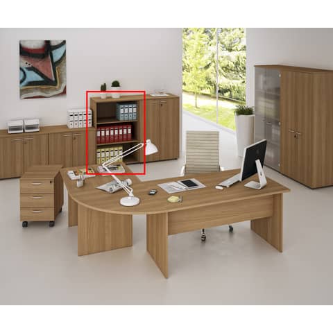 Mobile a giorno alto con tre ripiani Venere Plus, una linea economica ma caratterizzata da soluzioni tecniche di livello superiore. Una serie di componenti con dimensioni conformi alle normative sulla sicurezza dei posti di lavoro in ufficio.