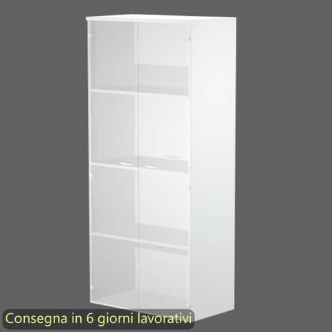 Mobile alto della linea Presto, una linea operativa contemporanea progettata per un utilizzo quotidiano ed intensivo in grado di soddisfare tutte le esigenze funzionali ed estetiche. La gamma completa degli elementi permette di allestire ogni ambiente di lavoro, personalizzandolo con stile. Scrivanie con dimensioni conformi alle normative sulla sicurezza dei posti di lavoro in ufficio. Dimensioni L. 80 x P. 35 x H. 180 cm. Top sp. 22 mm. Struttura, ante e ripiani sp. 18 mm. Tre ripiani regolabili in altezza con un sistema di bloccaggio nella posizione desiderata. Ante in vetro satinato senza serratura. Il mobile, rifinito posteriormente nello stesso colore della struttura, può essere utilizzato come parete divisoria. Dotato di piedini regolabili in altezza per un perfetto livellamento sul pavimento. Imballi in cartone riciclato alto spessore a tutela dell’ambiente. Produzione certificata conforme alle procedure UNI EN ISO 9001. Certificazioni FSC e PEFC. Struttura bianca.