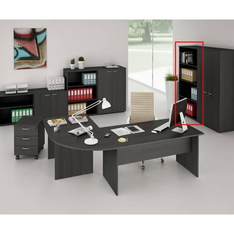 Dimensioni 80x35xH.180 cm, colore nero venato frassino. Peso totale imballi 44 kg. Ante compatibili codice 115750.