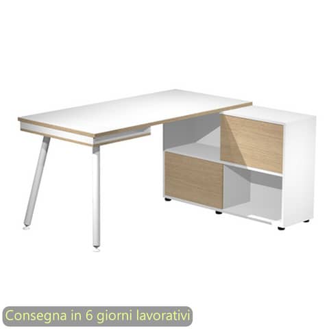 ARTEXPORT - Scrivania su mobile contenitore bianco e rovere gamba tubolare in metallo bianco 130x120xh.81,5 cm maxi - 20080-DJ-3C-AN
