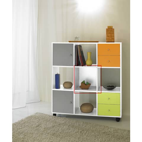 Coppia di dietri per libreria componibile Maxicolor, con pratico pomello per l’apertura. Dietri realizzati in melaminico bilaminato antigraffio e antiriflesso di 16 mm di spessore. Ogni dietro corrisponde esattamente a una casella della libreria.