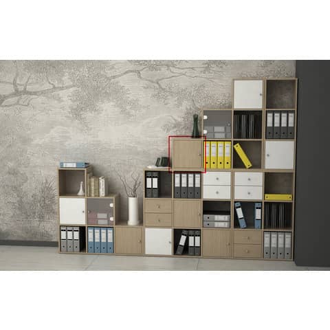 Coppia di dietri per libreria componibile Maxicolor, con pratico pomello per l’apertura. Dietri realizzati in melaminico bilaminato antigraffio e antiriflesso di 16 mm di spessore. Ogni dietro corrisponde esattamente a una casella della libreria.