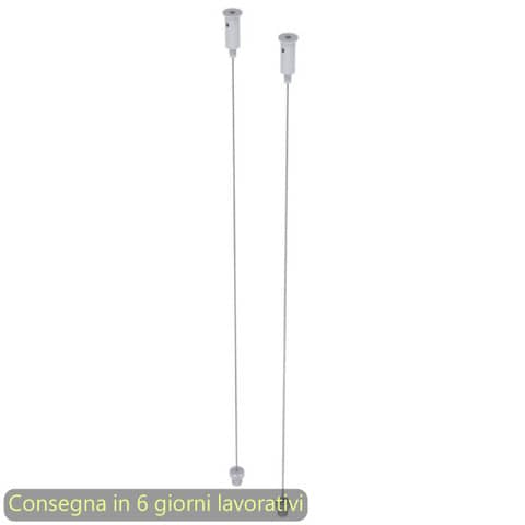 Coppia cavetti per sospensione pannello verticale a soffittolinea Woody zincati. Cavetti L.150 cm(l'altezza può essere ridotta tagliando l'eccedenza dei cavetti). Per pannelli L.120/140/160x40 cm. Imballo in cartone riciclato a tutela dell'ambiente. Produzione certificata conforme procedure UNI EN ISO 9001.