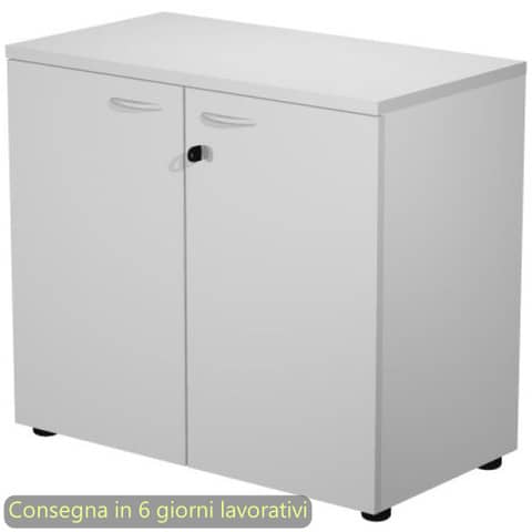 Mobile basso della linea Presto, una linea operativa contemporanea progettata per un utilizzo quotidiano ed intensivo in grado di soddisfare tutte le esigenze funzionali ed estetiche. La gamma completa degli elementi permette di allestire ogni ambiente di lavoro, personalizzandolo con stile. Scrivanie con dimensioni conformi alle normative sulla sicurezza dei posti di lavoro in ufficio. Dimensioni L. 80 x P. 44 x H. 72 cm. Top sp. 22 mm. Struttura, ante e ripiani sp. 18 mm. Un ripiano regolabile in altezza con un sistema di bloccaggio nella posizione desiderata. Ante in melaminico con una pratica serratura. Il mobile, rifinito posteriormente nello stesso colore della struttura, può essere utilizzato come parete divisoria. Dotato di piedini regolabili in altezza per un perfetto livellamento sul pavimento. Imballi in cartone riciclato alto spessore a tutela dell’ambiente. Produzione certificata conforme alle procedure UNI EN ISO 9001. Certificazioni FSC e PEFC. Struttura color grigio alluminio, ante di colore grigio.