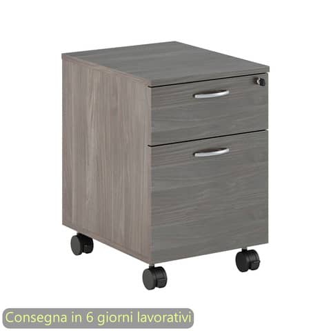 Cassettiera della linea Presto dotata di 1 cassetto con serratura ed 1 ampio classificatore per cartelle sospese con interasse 33 cm. Cassetti scorrevoli su guide metalliche con fermo a fine corsa. Dimensioni L. 43 x P. 52 x H. 59,5cm. Cassettiera su ruote pivotanti, smontate e con freno, con meccanismo antiribaltamento per un facile e sicuro spostamento. Schiena in tinta con la struttura. Materiale melaminico bilaminato antigraffio ed antiriflesso conforme alle norme UNI e EN classe E1. La cassettiera viene venduta e consegnata smontata. Produzione certificata conforme alle procedure UNI EN ISO 9001. Certificazioni FSC e PEFC. Prodotto da assemblare. Colore frassino toscano.