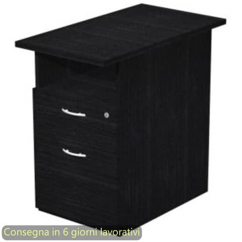 Cassettiera alta della linea Presto, una linea operativa contemporanea progettata per un utilizzo quotidiano ed intensivo in grado di soddisfare tutte le esigenze funzionali ed estetiche. La gamma completa degli elementi permette di allestire ogni ambiente di lavoro, personalizzandolo con stile. Scrivanie con dimensioni conformi alle normative sulla sicurezza dei posti di lavoro in ufficio. Dimensioni L. 43 x P. 80 x H. 72 cm. Cassettierea alte da affiancare alle scrivanie al lato di L80 cm o di L60 cm nelle postazioni compact con sagomatura. Cassetti con guide metalliche e fermo a fine corsa. Cassettiera dotata di un vano a giorno, 1 cassetto con serratura e 1 cassetto classificatore per cartelle sospese interasse 33 cm. Piano da 22 mm con bordo antiurto in ABS 3 mm. Materiale melaminico bilaminato antigraffio ed antiriflesso conforme alle norme UNI e EN classe E1. La cassettiera viene venduta e consegnata smontata. In dotazione libretto istruzioni per un semplice montaggio. Produzione certificata conforme alle procedure UNI EN ISO 9001. Certificazioni FSC e PEFC. Colore nero venato frassino. Senza ruote.