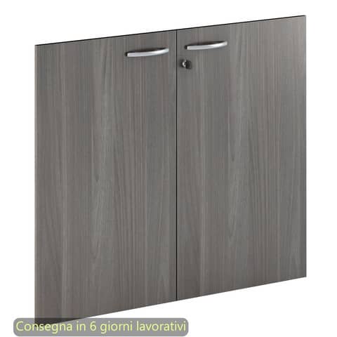 Coppia di ante per mobile basso Venere Plus, una linea economica ma caratterizzata da soluzioni tecniche di livello superiore. Una serie di componenti con dimensioni conformi alle normative sulla sicurezza dei posti di lavoro in ufficio.