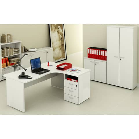 Ante realizzate in materiale bilaminato nobilitato melaminico, di 18 mm di spessore, dotate di serratura. Dimensioni 80xH.115 cm, colore bianco. Peso totale imballi 50 kg.