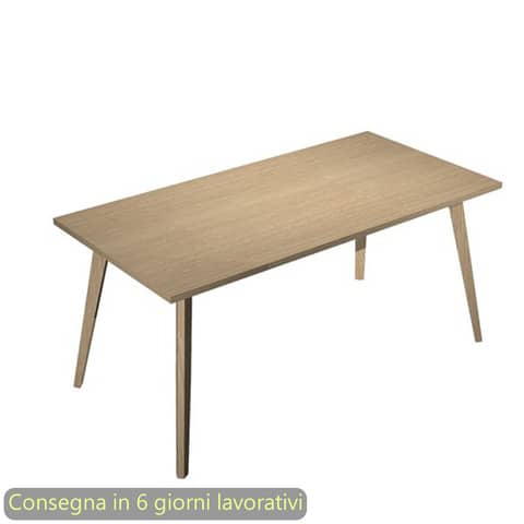 Scrivania della linea K143 Woody, una linea di arredo operativa dal design innovativo e dinamico, caratterizzata da gambe in legno massello cilindriche inclinate. Dimensioni L. 160 x P. 80 x H. 74,4 cm. Materiale bilaminato nobilitato melaminico spessore 22 mm conforme norme UNI e EN classe E1. Robusto piano in melaminico sp. 22 mm con bordo antishock resistente agli urti in ABS 2 mm, antigraffio e antiriflesso. Gambe in legno massello con finiture rovere (d. 50 mm) complete di piedini livellabili in altezza. Particolarmente stabile e robusta grazie alla struttura rafforzata da quattro travi in metallo di collegamento fra le gambe. Disponibile anche nella versione con le gambe in metallo verniciato al codice ... Certificazioni FSC e PEFC. Colore del piano rovere.