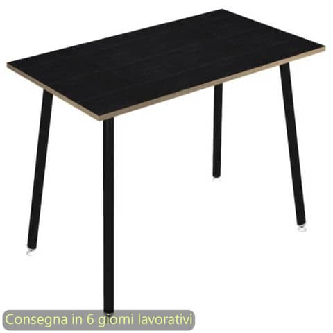 Tavolo alto della linea K67 Skinny Metal, una linea di arredo operativa dal design innovativo e dinamico, caratterizzata da gambe in metallo cilindriche inclinate. L'ideale per l’arredo di punti ristoro e per l’allestimento di postazioni di appoggio per veloci riunioni ed incontri di lavoro. Dimensioni L. 120 x P. 80 x H. 105 cm. Materiale bilaminato nobilitato melaminico spessore 22 mm conforme alle norme UNI e EN classe E1. Robusto piano in melaminico sp. 22 mm con bordo antishock resistente agli urti in ABS 2 mm, antigraffio e antiriflesso. Gambe in metallo verniciato nero (d. 50 mm) complete di piedini livellabili in altezza. Particolarmente stabile e robusto grazie alla struttura rafforzata da quattro travi in metallo di collegamento fra le gambe. Disponibile anche nella versione con le gambe in legno massello. Certificazioni FSC e PEFC. Colore del piano nero venato frassino con bordo rovere.