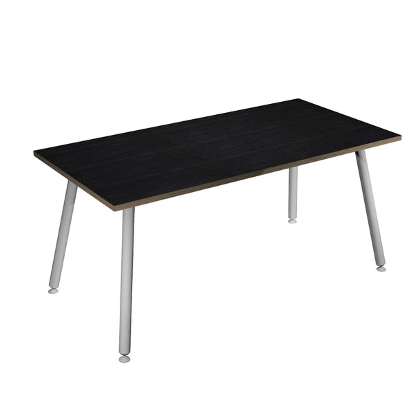 Linea di arredo operativo dal design innovativo e dinamico caratterizzata dalle gambe in metallo cilindriche inclinate delle scrivanie e dei tavoli rotondi. Robusti piani in melaminico sp. 22 mm con bordo antishock resistente agli urti in abs 2mm. Gambe in metallo verniciato bianco (diam. 50 mm) complete di piedini livellabili in altezza.