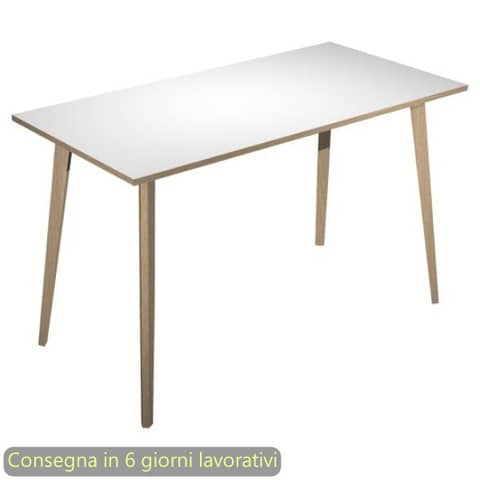 Tavolo alto della linea K143 Woody, una linea di arredo operativa dal design innovativo e dinamico, caratterizzata da gambe in legno massello cilindriche inclinate. L'ideale per l’arredo di punti ristoro e per l’allestimento di postazioni di appoggio per veloci riunioni ed incontri di lavoro. Dimensioni L. 180 x P. 80 x H. 105 cm. Materiale bilaminato nobilitato melaminico spessore 22 mm conforme alle norme UNI e EN classe E1. Robusto piano in melaminico sp. 22 mm con bordo antishock resistente agli urti in ABS 2 mm, antigraffio e antiriflesso. Gambe in legno massello (d. 50 mm) con finitura rovere, complete di piedini livellabili in altezza. Particolarmente stabile e robusto grazie alla struttura rafforzata da quattro travi in metallo nero opaco di collegamento fra le gambe. Disponibile anche nella versione con le gambe in metallo al codice 126005. Certificazioni FSC e PEFC. Colore del piano bianco con bordi rovere.