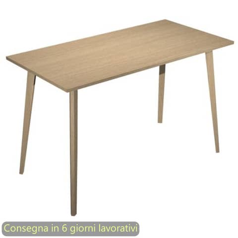 Tavolo alto della linea K143 Woody, una linea di arredo operativa dal design innovativo e dinamico, caratterizzata da gambe in legno massello cilindriche inclinate. L'ideale per l’arredo di punti ristoro e per l’allestimento di postazioni di appoggio per veloci riunioni ed incontri di lavoro. Dimensioni L. 180 x P. 80 x H. 105 cm. Materiale bilaminato nobilitato melaminico spessore 22 mm conforme alle norme UNI e EN classe E1. Robusto piano in melaminico sp. 22 mm con bordo antishock resistente agli urti in ABS 2 mm, antigraffio e antiriflesso. Gambe in legno massello (d. 50 mm) con finitura rovere, complete di piedini livellabili in altezza. Particolarmente stabile e robusto grazie alla struttura rafforzata da quattro travi in metallo nero opaco di collegamento fra le gambe. Disponibile anche nella versione con le gambe in metallo al codice 126007. Certificazioni FSC e PEFC. Colore del piano rovere.