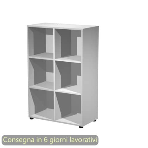 Contenitore 6 caselle a giorno grigio. Dimensioni: 80x40xH.121,6 cm. Top spessore: 18 mm. Fianchi, ripiani e base spessore: 18 mm . Dietro spessore: 10 mm. Ante spessore: 18 mm .Materiale bilaminato nobilitato melaminico spessore conforme norme UNI e EN classe E1, antigraffio ed antiriflesso. Programma di contenitori a 6 caselle allestibili a giorno oppure con ante complete di serratura. Ideali sia per l’archiviazione di documenti che in tutti quei contesti in cui è opportuno offrire la possibilità di lasciare oggetti personali custoditi all’interno di un vano chiuso a chiave. Il design delle ante permette, anche da chiuse, di inserire documenti all’interno della casella. Utilizzabile anche come casellario. Le singole caselle misurano 372x372 mm (L x H) e complete di ante hanno una profondità utile di 366 mm. Dotate di piedini livellabili in altezza. Disponibile nelle seguenti colorazioni. Struttura: 3-bianco e grigio alluminio. Ante: bianco, rovere, grigio alluminio, rosso, verde e viola scarlatto.