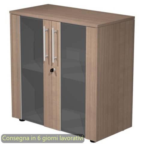 Armadio basso con top ciliegio arabis, fianchi finitura e ante in vetro/melaminico con serratura. Struttura grigio alluminio. Top e fianchi di finitura con spessore 14 mm. Dimensioni: 82,8x43xH.81,4 cm. Produzione interna Artexport della parte in legno certificata Iso 9001. Certificazioni FSC e PEFC. Imballi totalmente in cartone per un facile riciclo, a basso impatto ambientale.