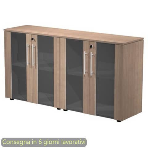 Copia armadi bassi con top ciliegio arabis, fianchi finitura e ante in vetro/melaminico con serratura. Struttura grigio alluminio. Top e fianchi di finitura con spessore 14 mm. Dimensioni: 162,8x43xH.81,4 cm. Produzione interna Artexport della parte in legno certificata Iso 9001. Certificazioni FSC e PEFC. Imballi totalmente in cartone per un facile riciclo, a basso impatto ambientale.