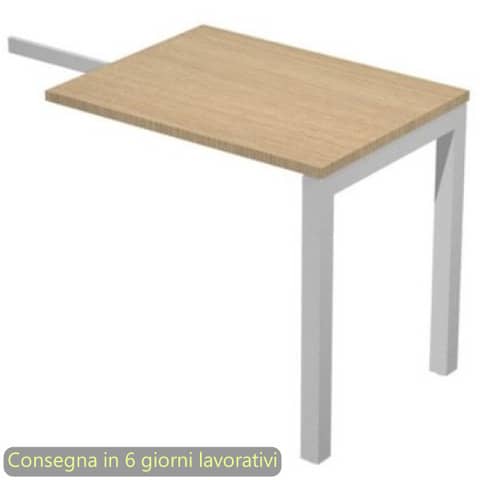 Allungo reversibile dx/sx per scrivanie con fianchi metallo sezione quadrata 50 mm. Piano rovere e gambe bianche. Dimensioni: 80x60xH.72,5 cm. Produzione interna Artexport della parte in legno certificata Iso 9001. Certificazioni FSC e PEFC. Imballi totalmente in cartone per un facile riciclo, a basso impatto ambientale.