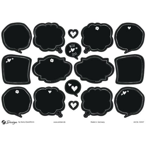 Trend Sticker in 2 fogli formato A5. Edizione: etichette effetto lavagna. Realizzati in carta FSC.