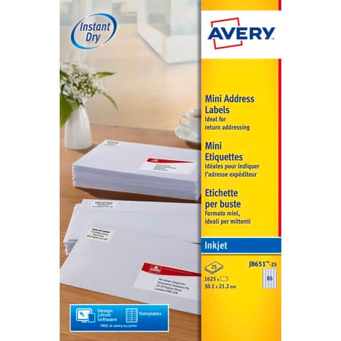 AVERY - Etichetta adesiva j8651 bianca 25fg a4 38,1x21,2mm (65et/fg inkjet - J8651-25