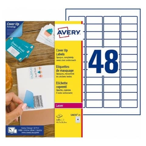 AVERY - Etichette bianche coprenti blockout a4 25 fg 45,7x21,2mm (48 et/fg laser - L4614-25