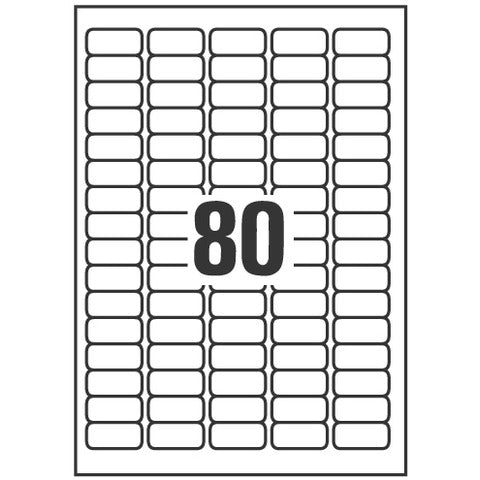 Etichette bianche rimovibili laser/inkjet. Dimensioni: 35,6 x 16,9 mm. N°80 etichette per foglio. Confezione da 25+5 fogli OMAGGIO.